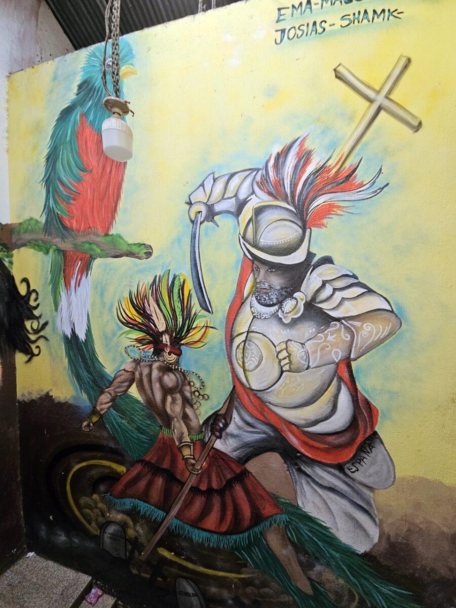 –Practica actuală: Chiar și după secole de dominație catolică, preoții mayași (chuchkajaues) continuă să folosească treptele și interiorul bisericii pentru ritualuri ancestrale cu tămâie și lumânări, un exemplu rar de coexistență religioasă pașnică.
