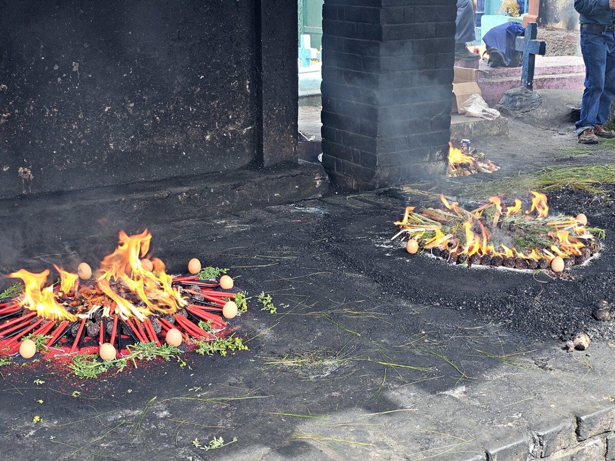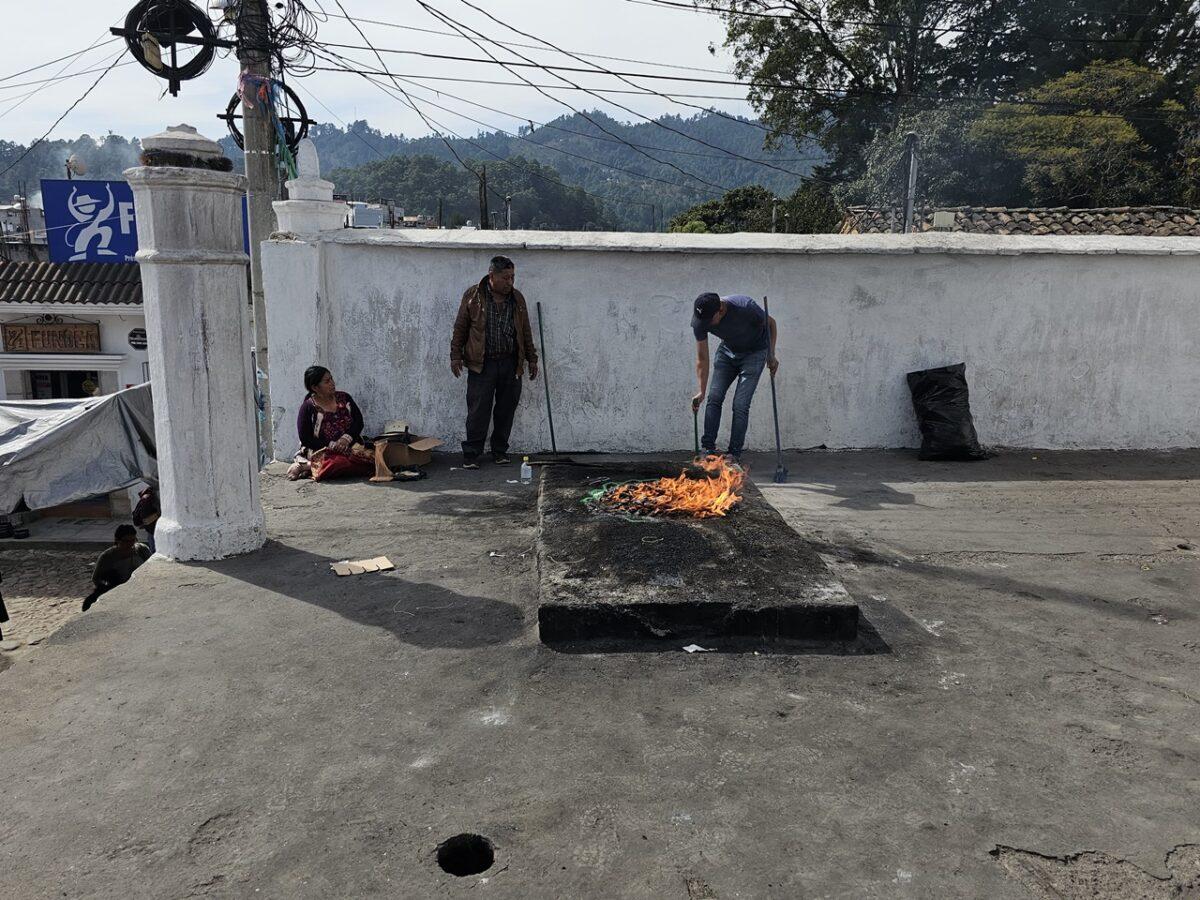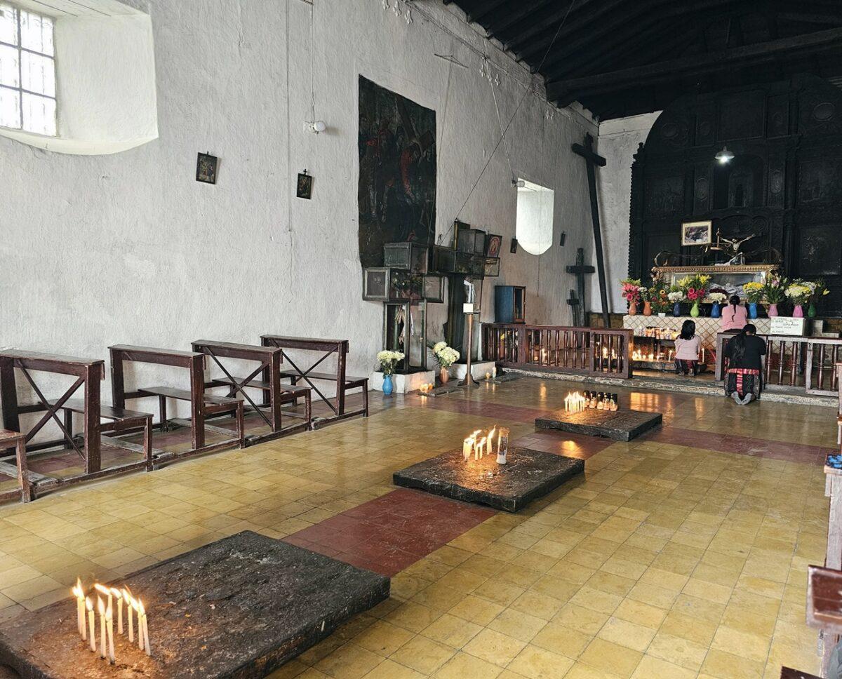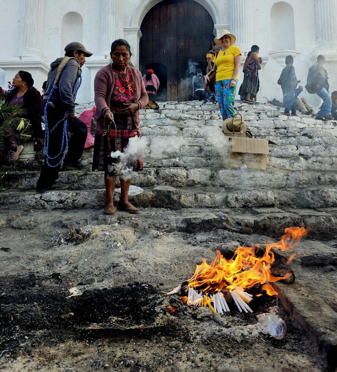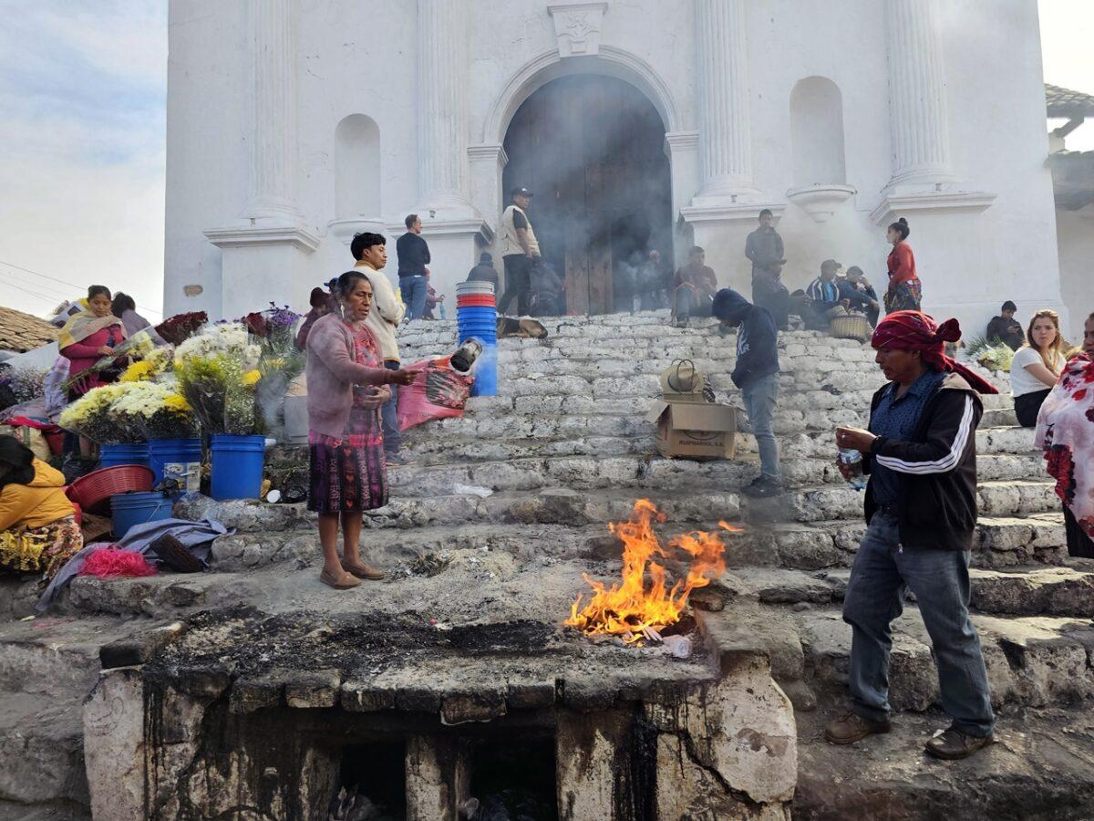 Aceste lumânări sunt adesea aprinse direct pe podeaua bisericii sau pe treptele acesteia, însoțite de rugăciuni în limba K’iche’ și fum de tămâie (copal).