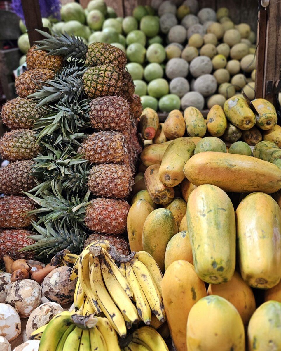 – Produse proaspete: O explozie de culori cu fructe exotice (precum rambutan sau banane locale), legume și condimente.