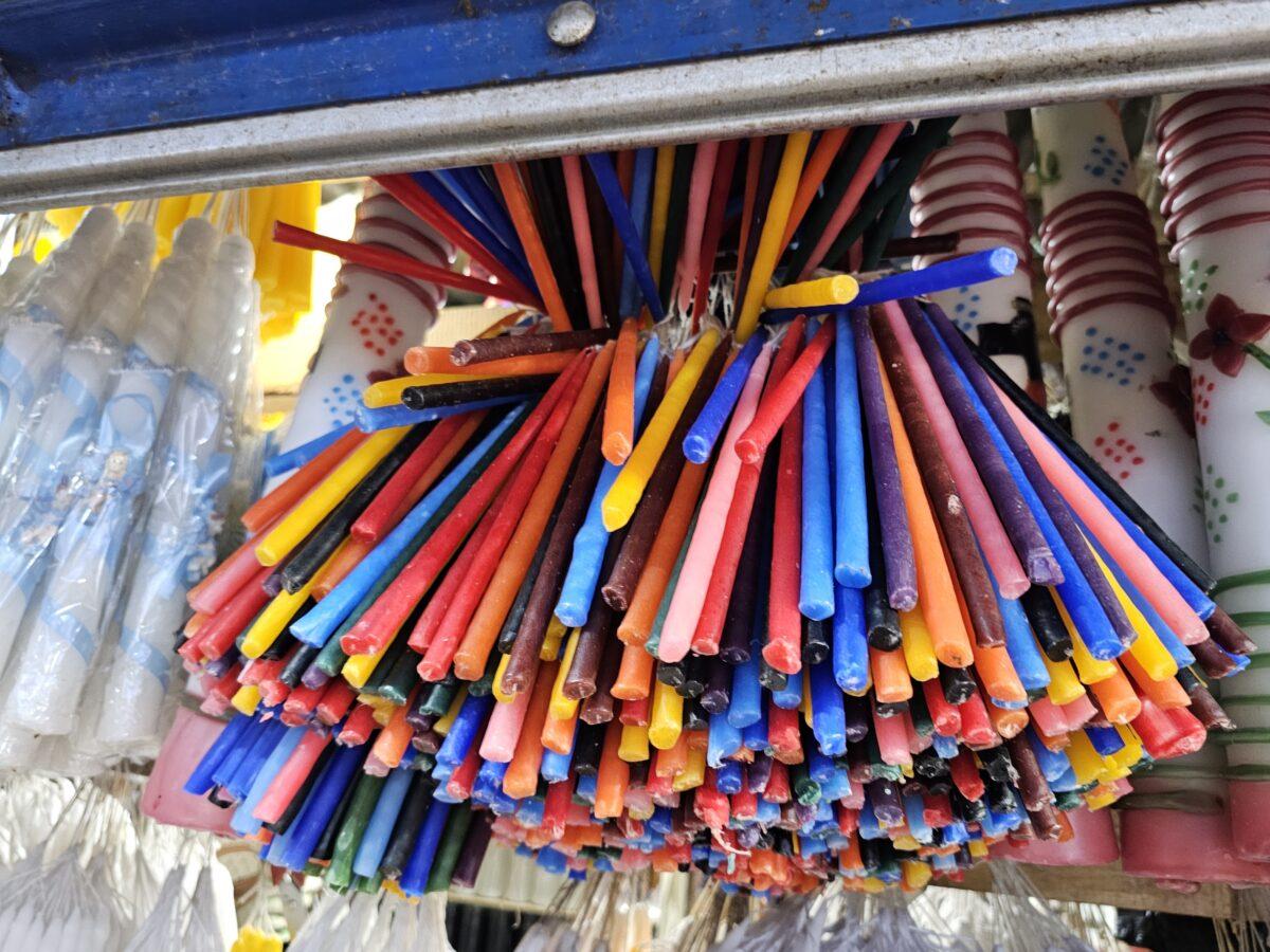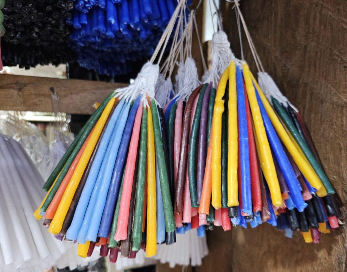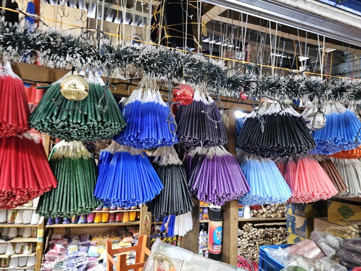 Culorile lumânărilor folosite în ritualurile de la Biserica Santo Tomás îmbină tradițiile catolice cu cele mayașe.