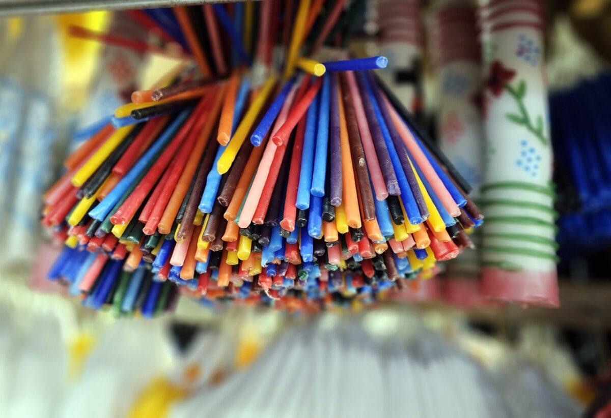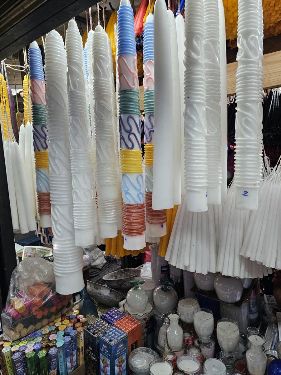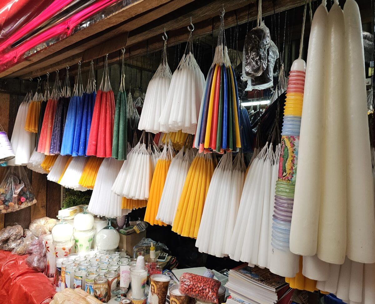 Culorile lumânărilor folosite în ritualurile de la Biserica Santo Tomás îmbină tradițiile catolice cu cele mayașe.