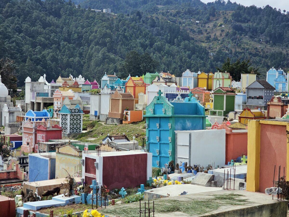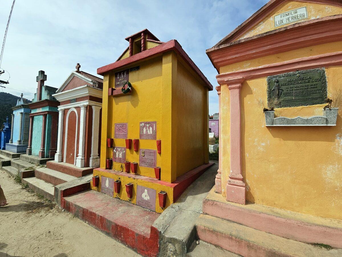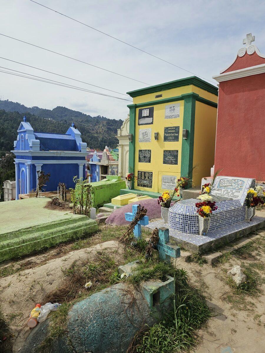 Situat pe un deal, acest cimitir este faimos pentru mormintele vopsite în culori vii, fiecare nuanță având o semnificație simbolică pentru familiile decedaților. În cimitirul din Chichicastenango, culorile nu sunt alese la întâmplare; ele transformă mormintele într-un cod vizual ce reflectă statutul defunctului in cosmologia Maya. Iată semnificația celor mai folosite nuanțe: