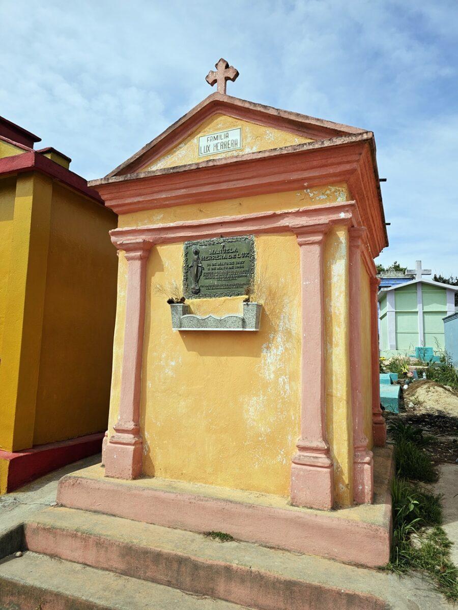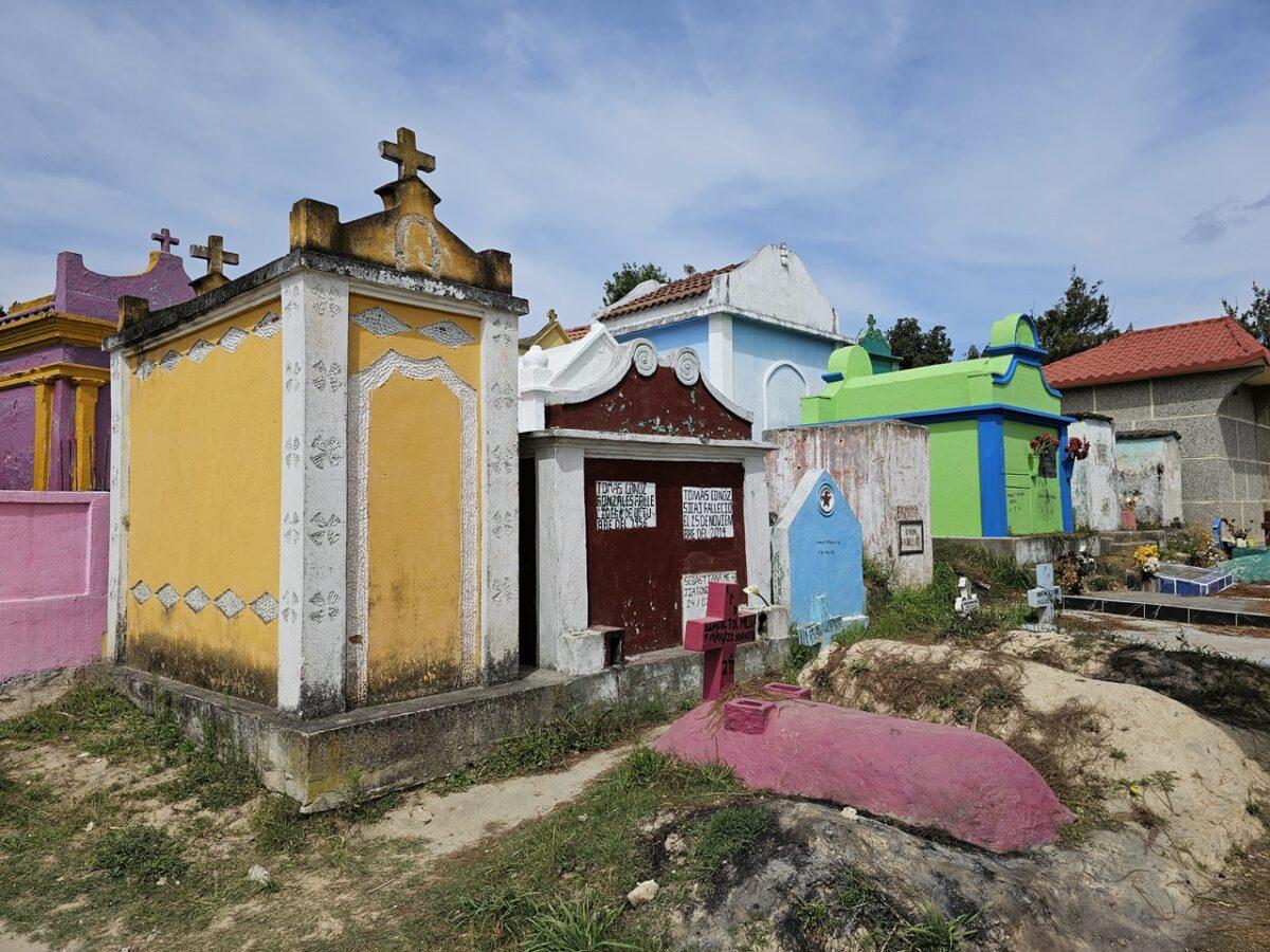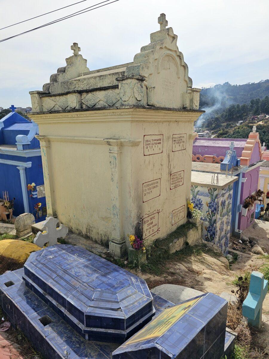 Situat pe un deal, acest cimitir este faimos pentru mormintele vopsite în culori vii, fiecare nuanță având o semnificație simbolică pentru familiile decedaților. În cimitirul din Chichicastenango, culorile nu sunt alese la întâmplare; ele transformă mormintele într-un cod vizual ce reflectă statutul defunctului in cosmologia Maya. Iată semnificația celor mai folosite nuanțe: