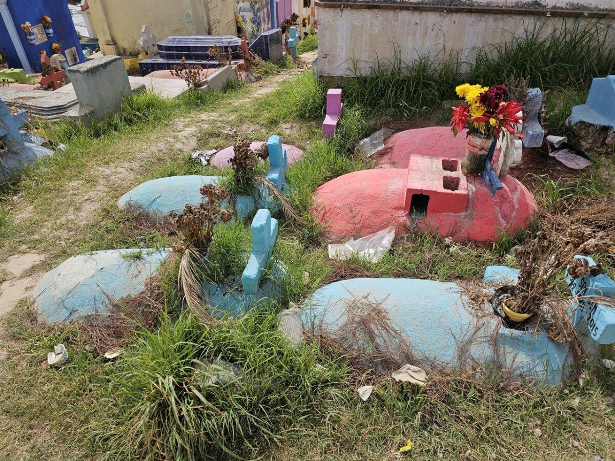 – Turcoaz / Albastru: Indică mormintele mamelor și ale femeilor în general, fiind culoarea care simbolizează speranța și protecția spiritului feminin.