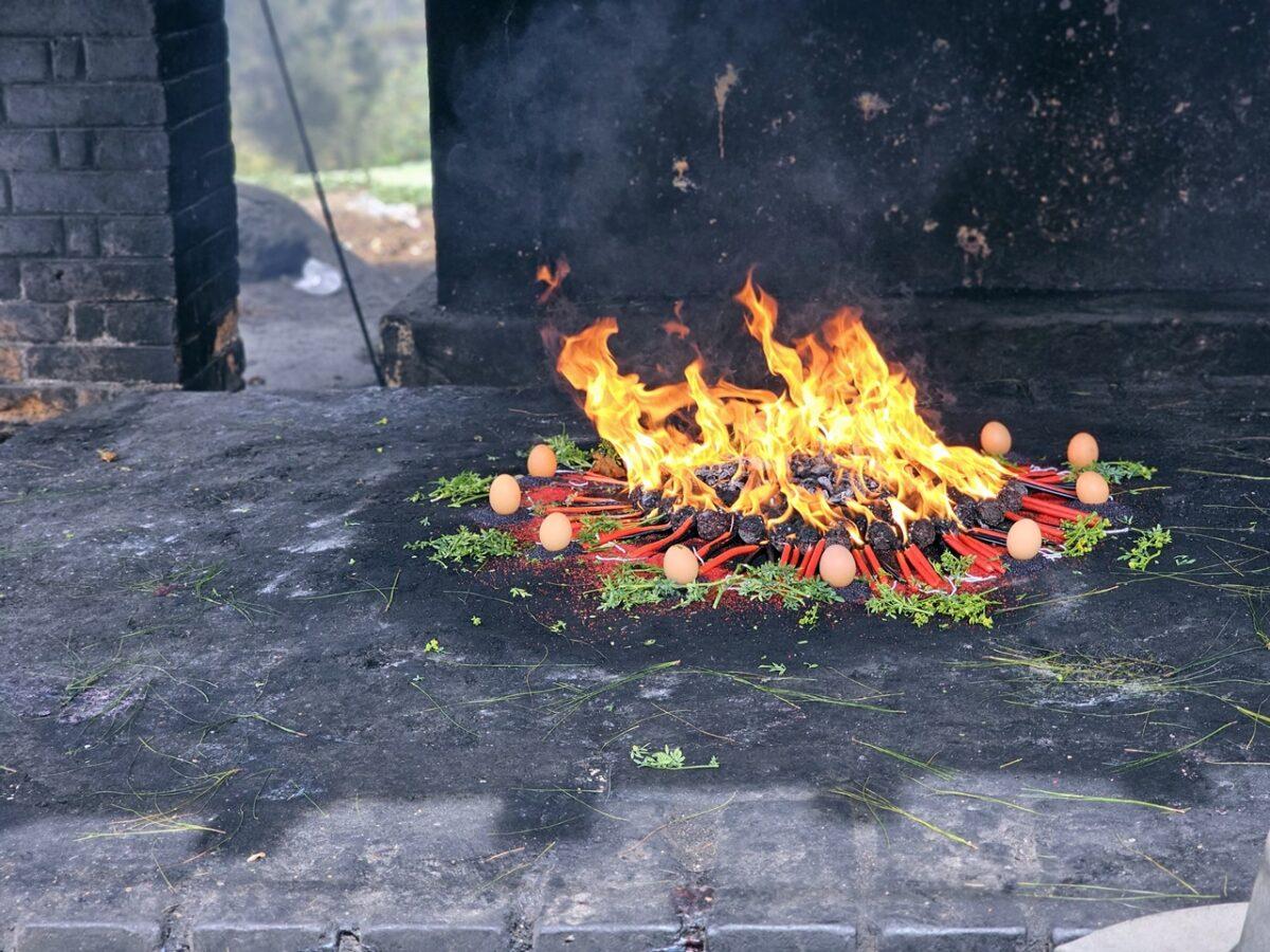 – Ofrandele: Se ard cantități mari de copal (rășînă de pin sacră) și lumânări de diferite culori, fiecare reprezentând o dorință: roșu pentru dragoste, negru pentru protecție împotriva vrăjilor și galben pentru recoltă.