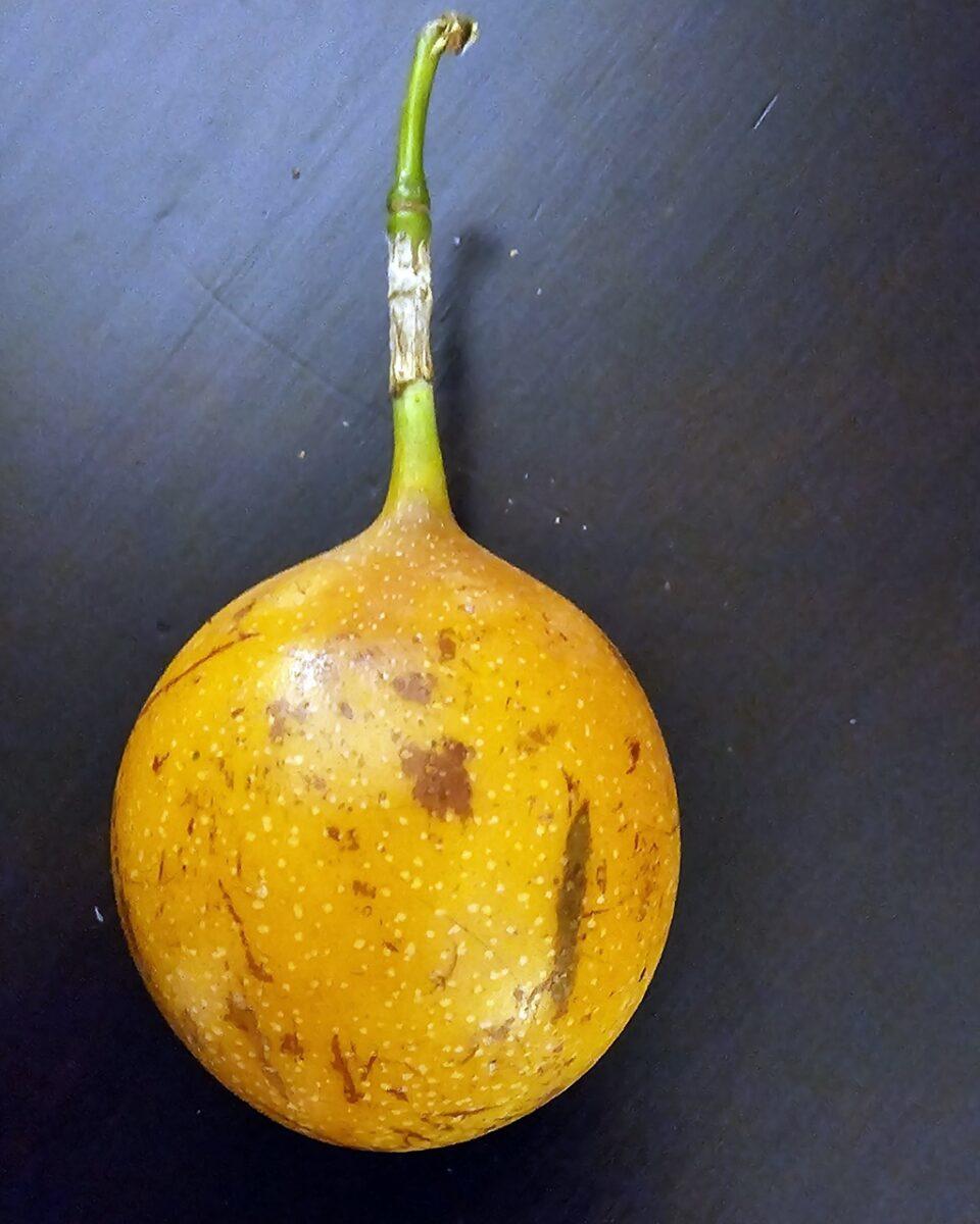 5.Granadilla: O rudă a fructului pasiunii, dar cu un înveliș portocaliu tare. Interiorul conține semințe crocante învelite într-o pulpă dulce și gelatinoasă, foarte revigorantă.