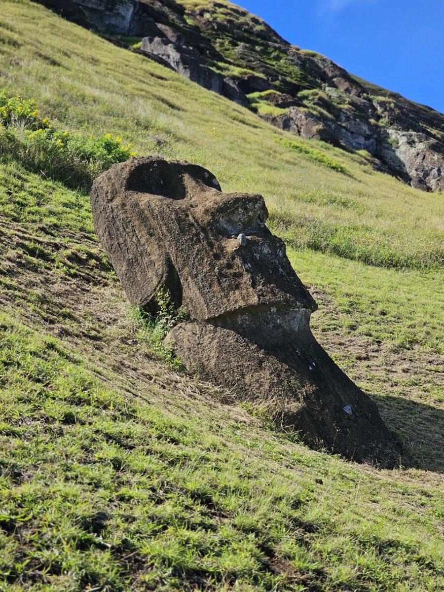 La Rano Raraku, la „fabrica de moai”, vei vedea procesul de creație înghețat în timp. Este locul unde teoriile despre sculptură devin realitate vizibilă. Iată ce trebuie să cauți pentru a înțelege cum prindeau viață acești giganți. În zonă găsiți răspândiți  397 de moai.
