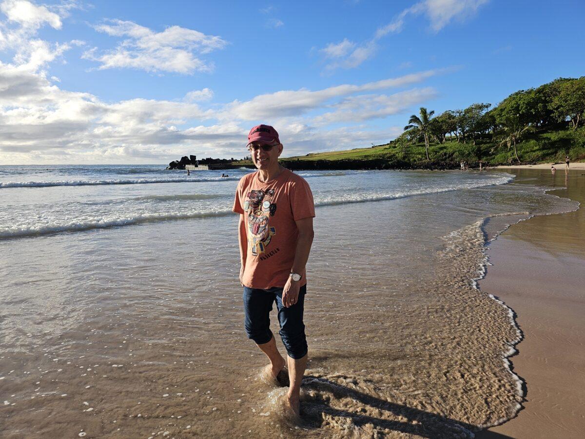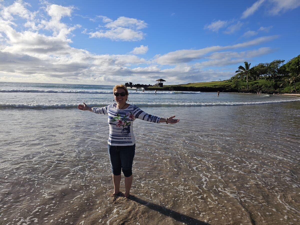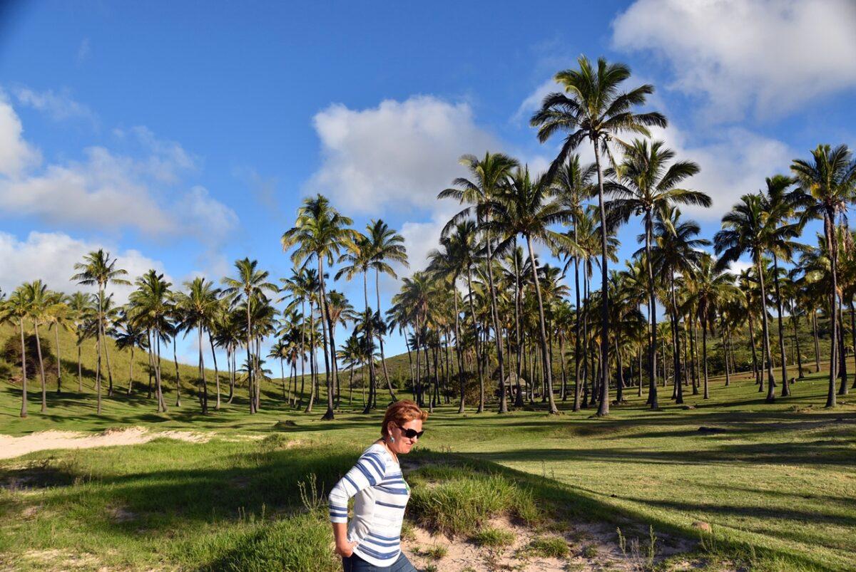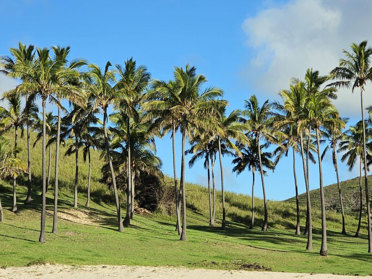 Plaja Anakena: O plajă paradisiacă cu nisip alb, palmieri și moai care „păzesc” malul oceanului.