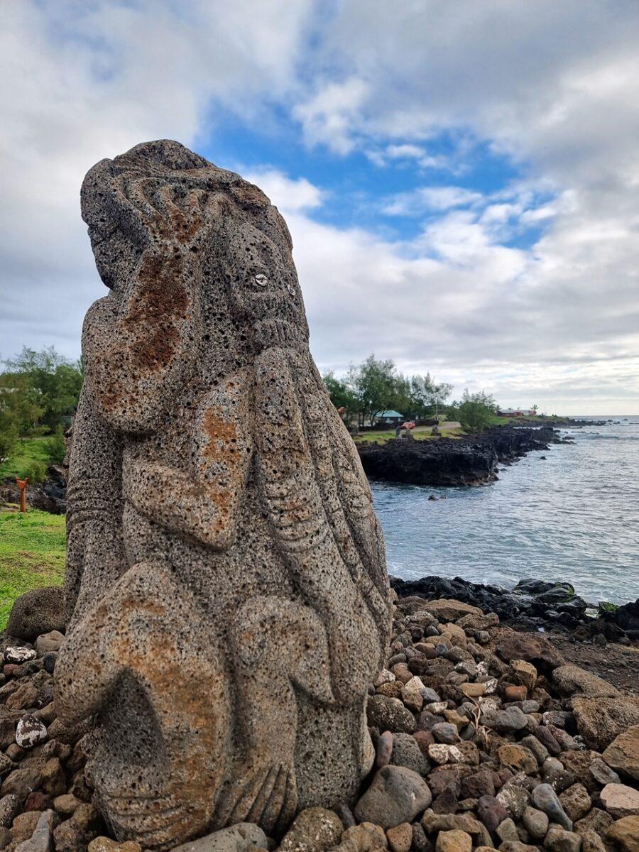 Moai Tukuturi (Cel care stă în genunchi). Este cea mai ciudată statuie de pe insulă. Spre deosebire de moai clasici (care sunt rigizi, masculini și se opresc la nivelul pelvisului), Tukuturi are picioare, stă în genunchi și are o barbă sculptată. Seamănă mai mult cu statuile găsite în Polinezia Franceză, fiind probabil o reprezentare a unui stil mult mai vechi.