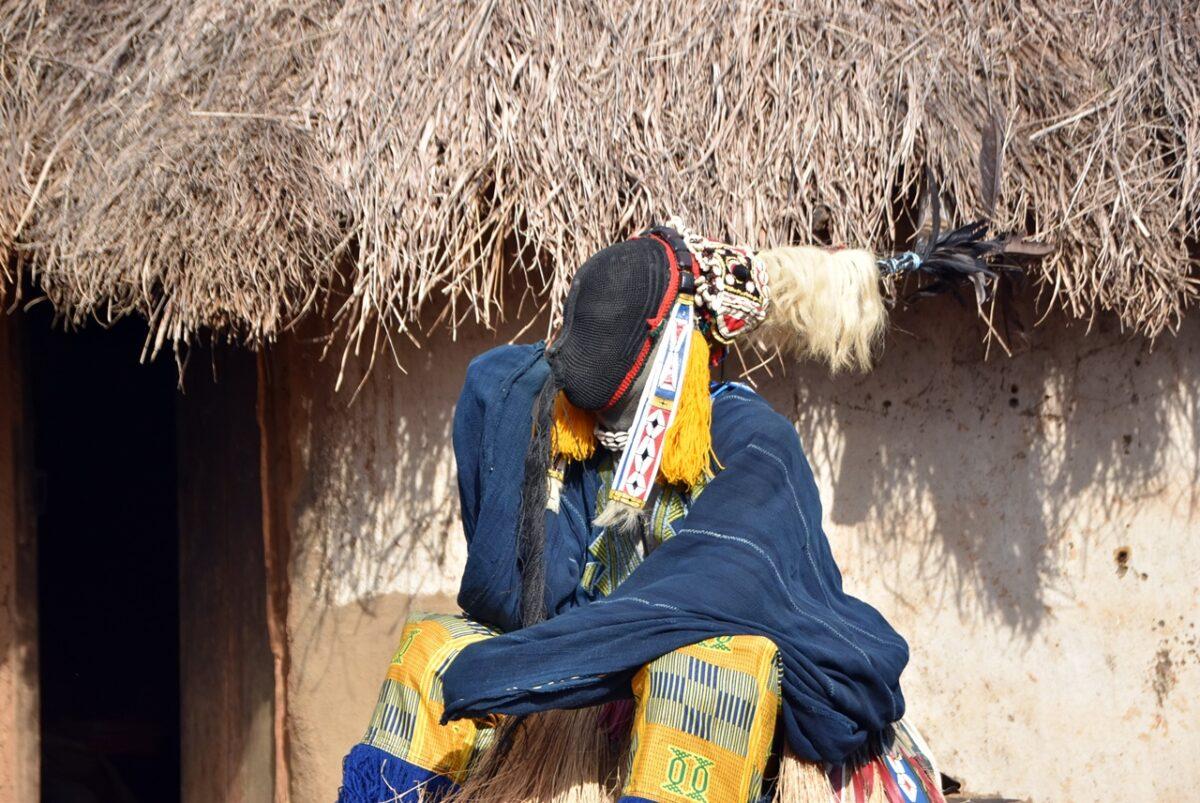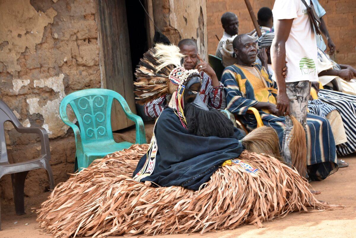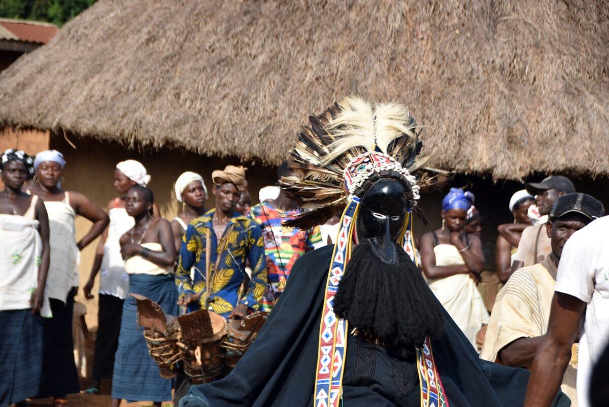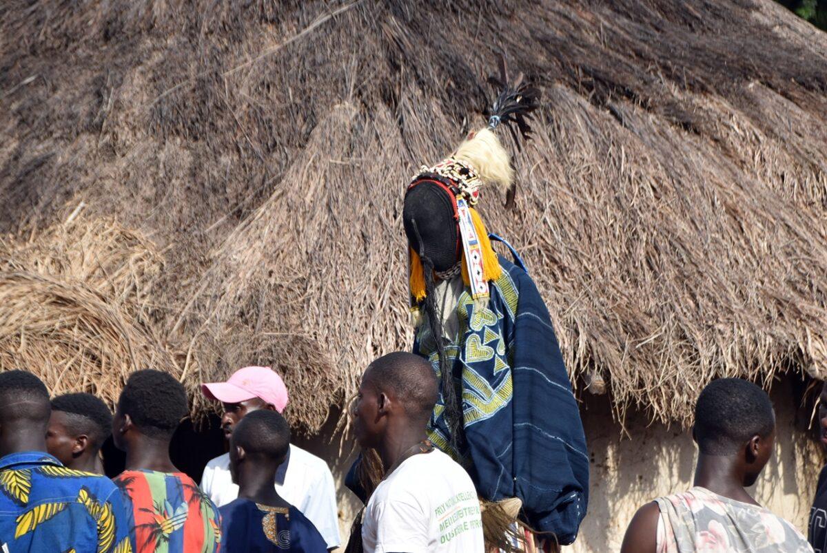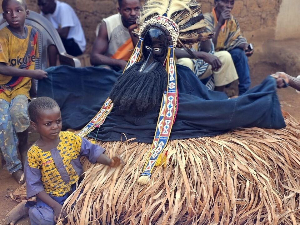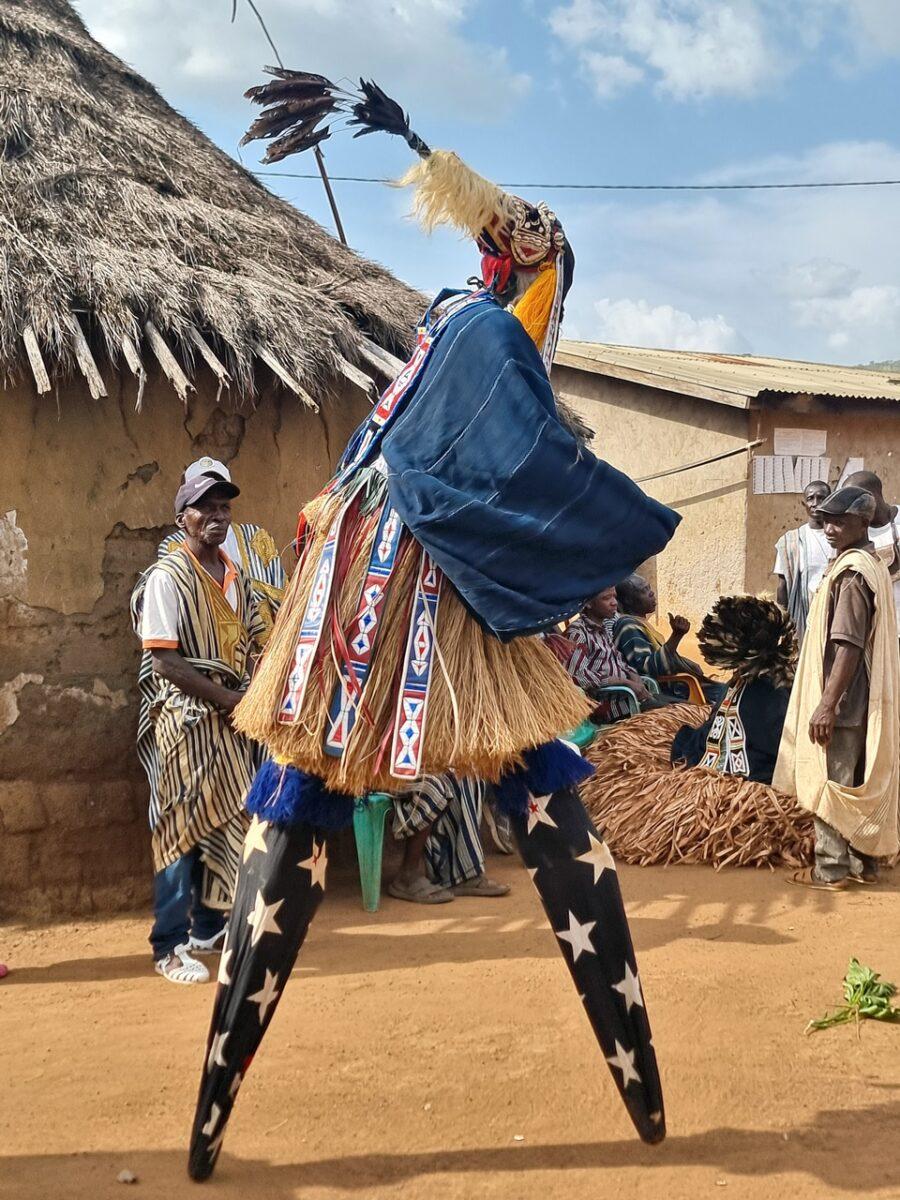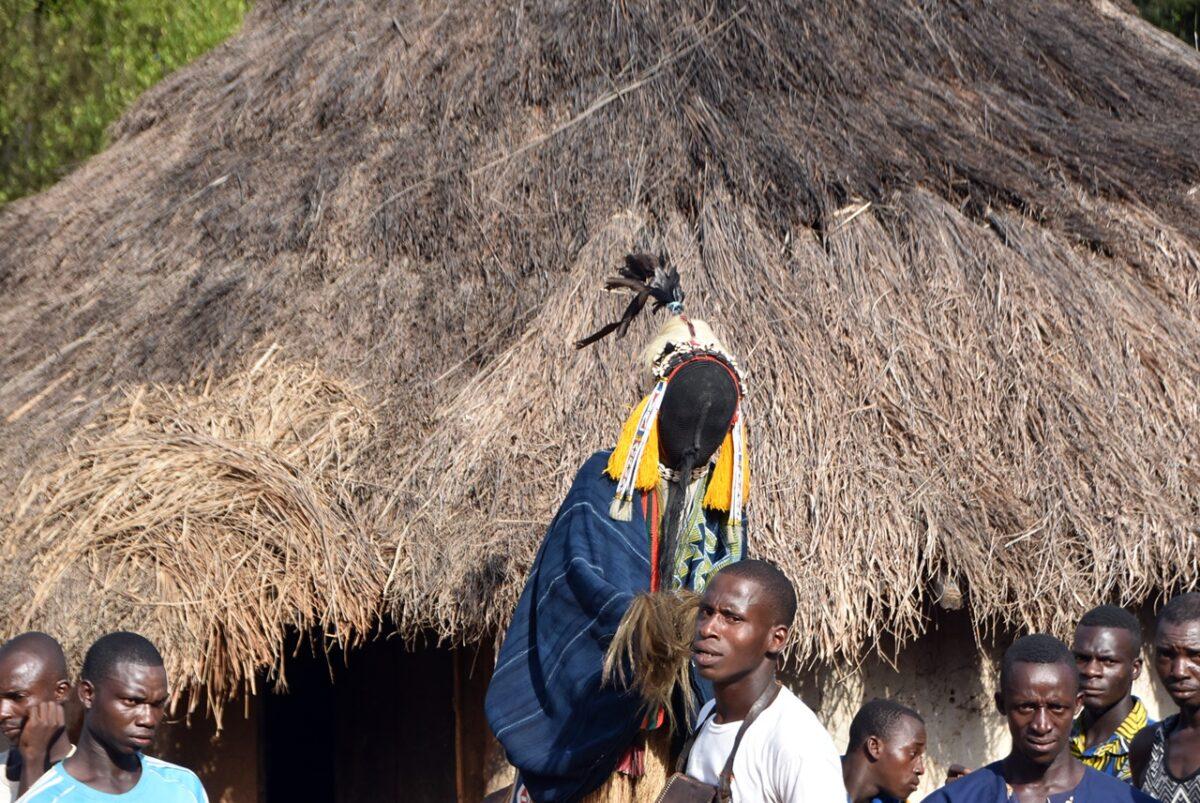 Totul începe departe de ochii curioșilor. Înainte ca măștile să apară în sat, ele „prind viață” în pădurea sacră care înconjoară așezarea. – Sunetul tobelor: Ritmul tobelor comunică satului că spiritele sunt gata să coboare. Toboșarii folosesc ritmuri specifice care „cheamă” masca. – Acompaniamentul feminin: Deși bărbații poartă măștile, femeile joacă un rol crucial. Ele formează coruri care cântă laude spiritelor, creând o atmosferă de transă colectivă.