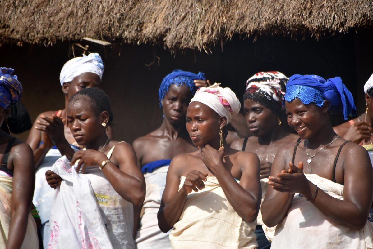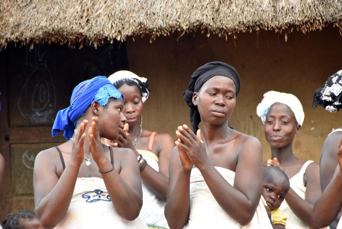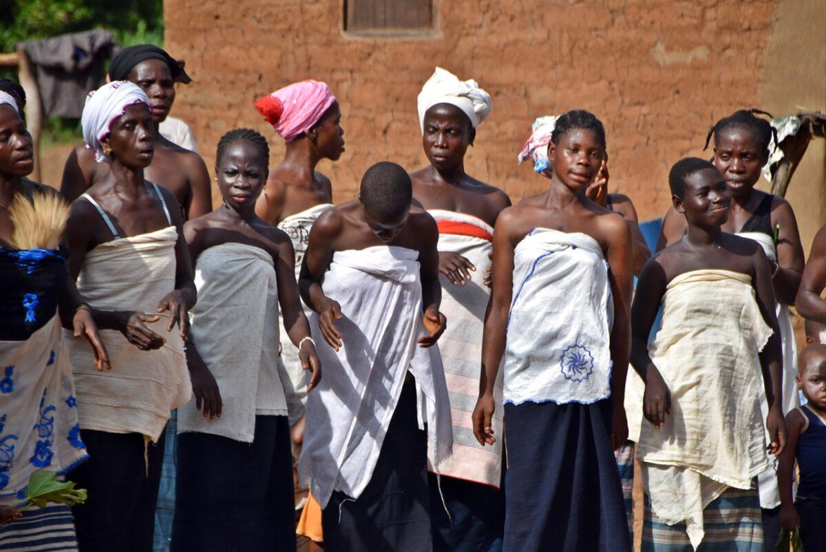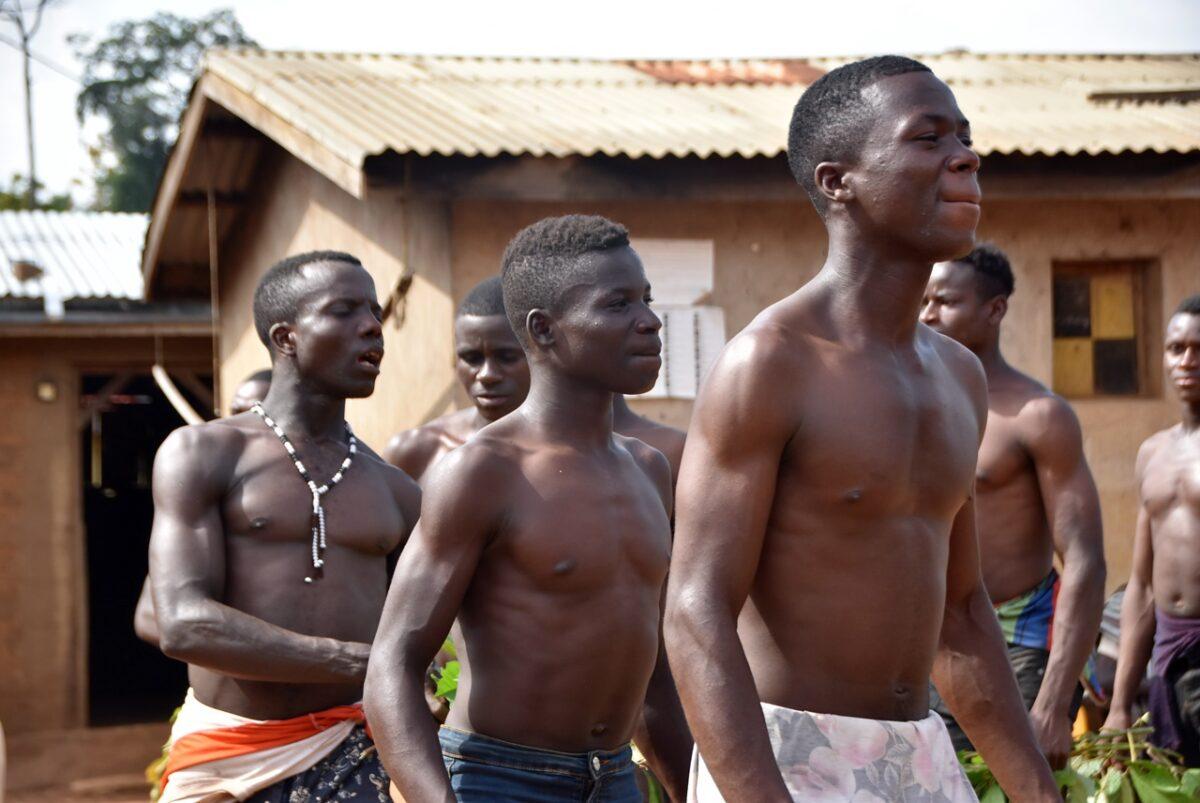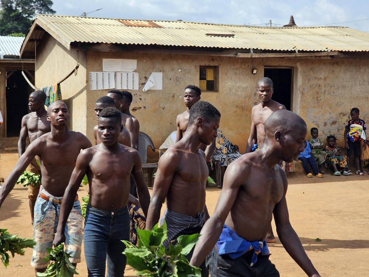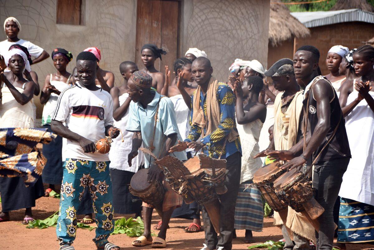 Totul începe departe de ochii curioșilor. Înainte ca măștile să apară în sat, ele „prind viață” în pădurea sacră care înconjoară așezarea. – Sunetul tobelor: Ritmul tobelor comunică satului că spiritele sunt gata să coboare. Toboșarii folosesc ritmuri specifice care „cheamă” masca. – Acompaniamentul feminin: Deși bărbații poartă măștile, femeile joacă un rol crucial. Ele formează coruri care cântă laude spiritelor, creând o atmosferă de transă colectivă.