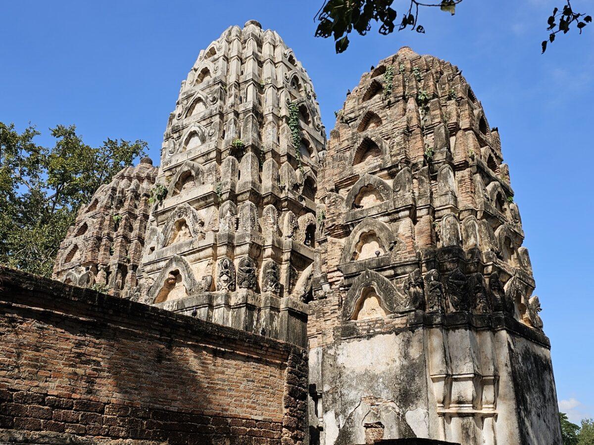 Materiale: Spre deosebire de templele khmere din piatră, cele din Sukhothai sunt construite în principal din laterit și cărămidă, acoperite ulterior cu stucatură albă fină.