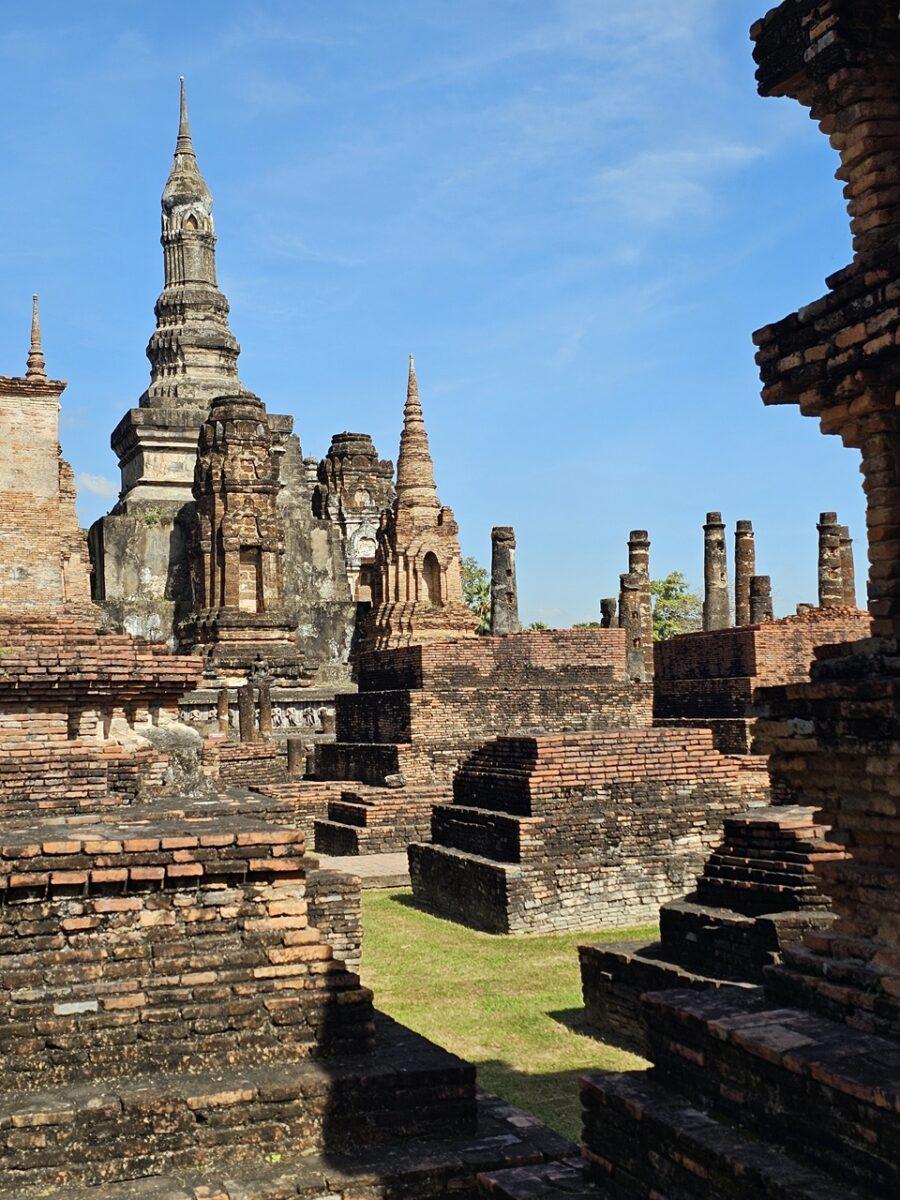 -Wat Mahathat: Templul “Relicvei Supreme”. Era centrul administrativ și spiritual, unde regele oficia ceremoniile.