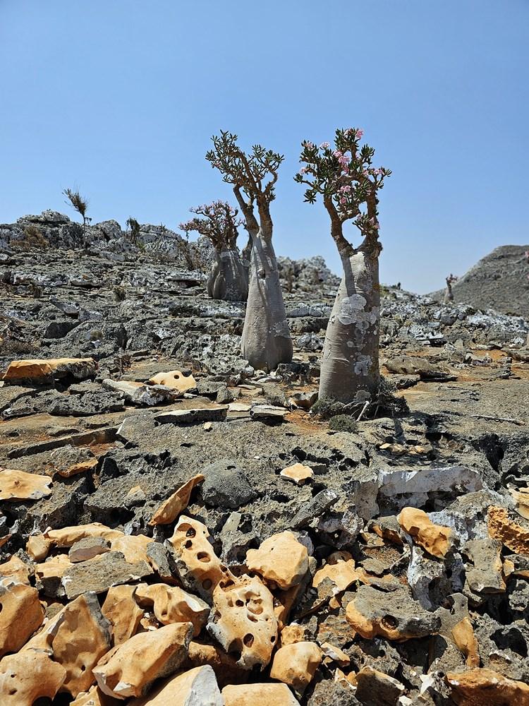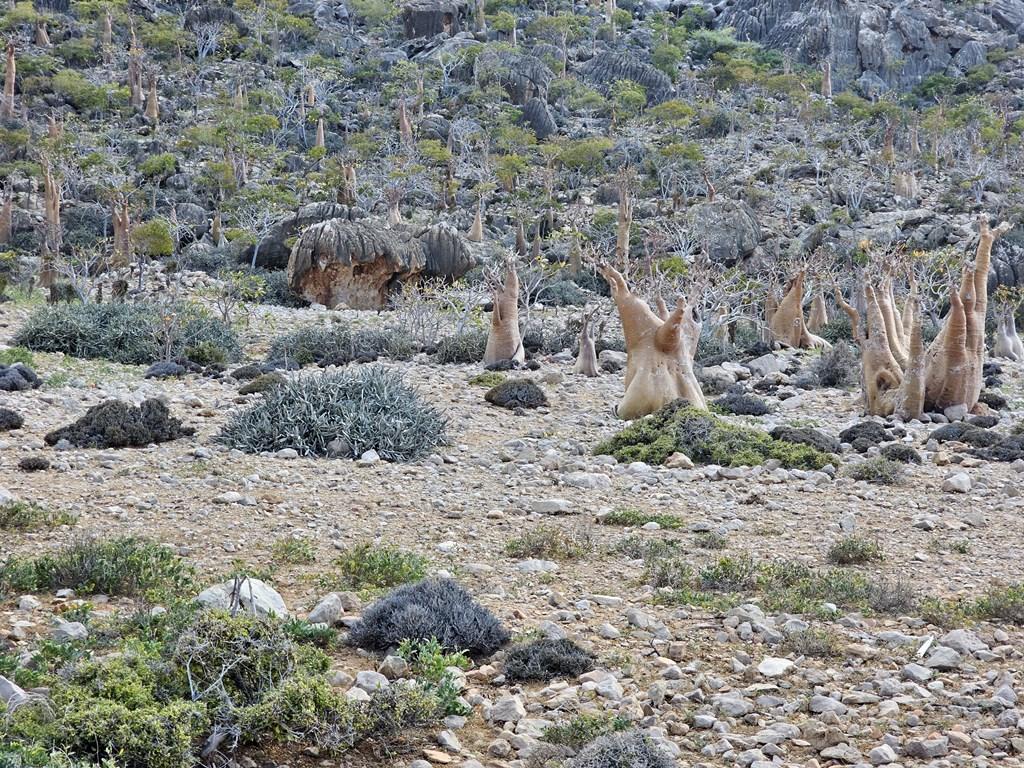 Pe lângă aceștia, platoul abundă în copaci de tămâie (Boswellia), copaci butelie (Adenium obesum) și rarul copac castravete.