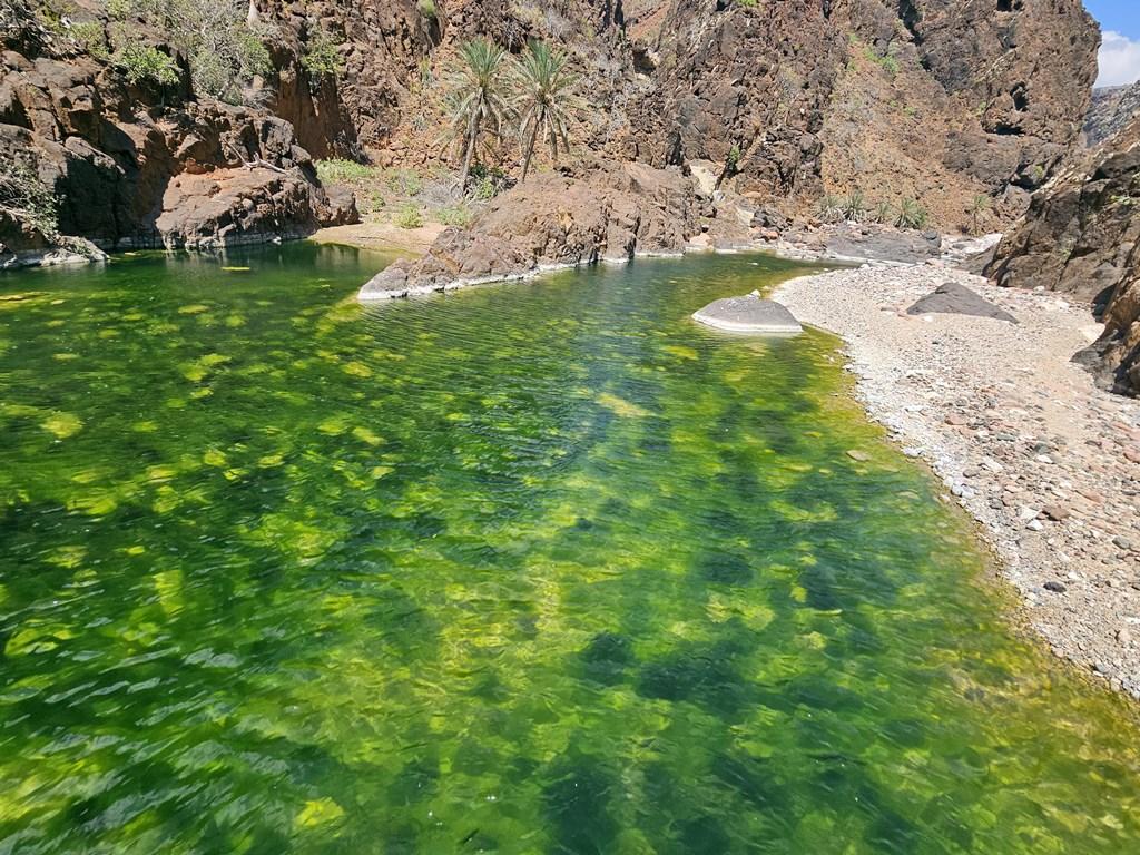 Oaza: la fundul canionului vei găsi o oază cu palmieri și piscine naturale de un verde smarald, încadrate de pereți de stâncă verticali. Este locul ideal pentru prânz și o baie răcoritoare după explorarea platoului încins.