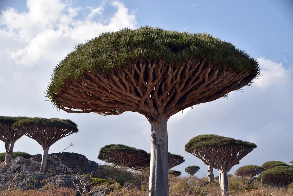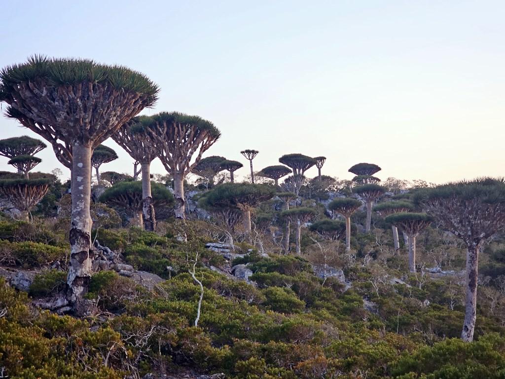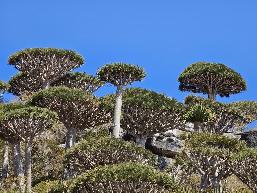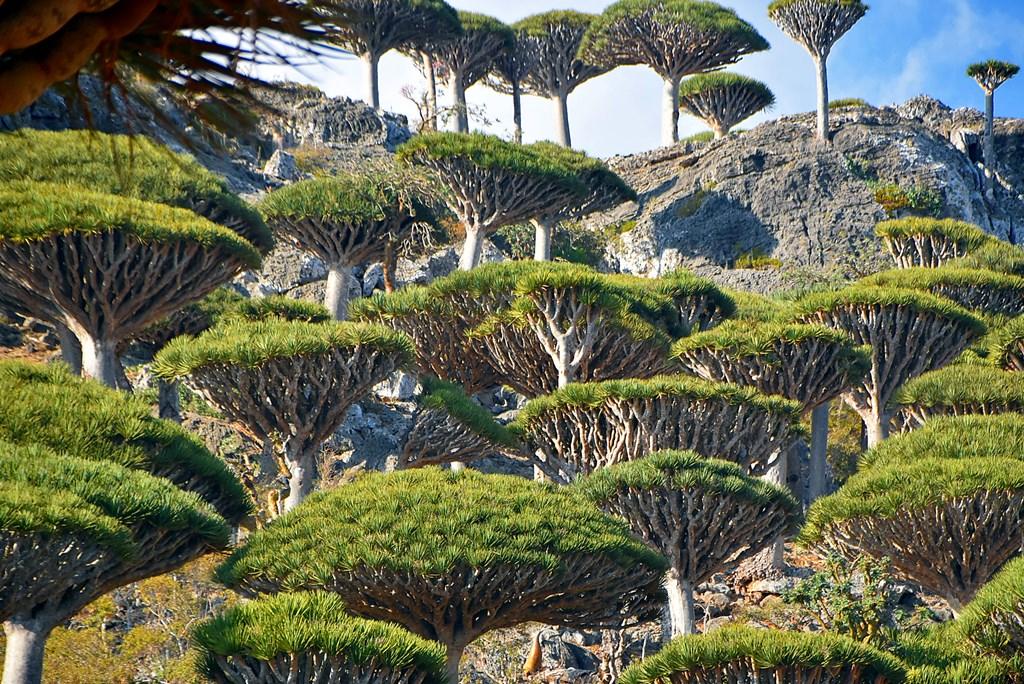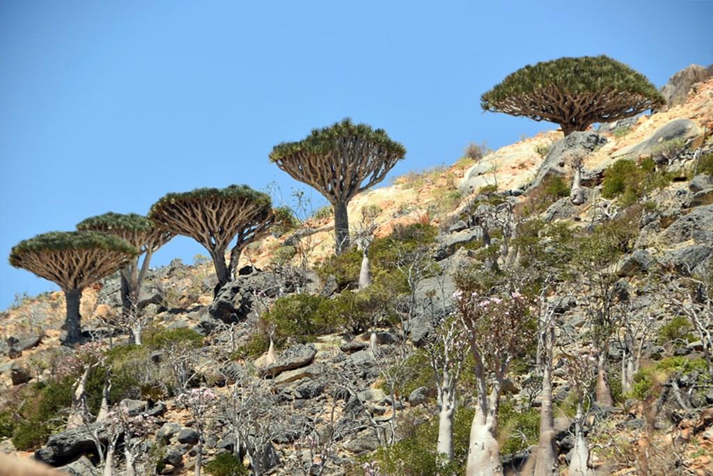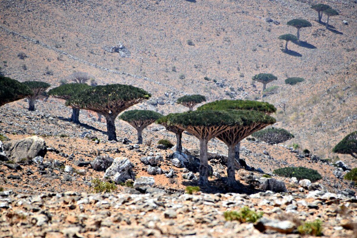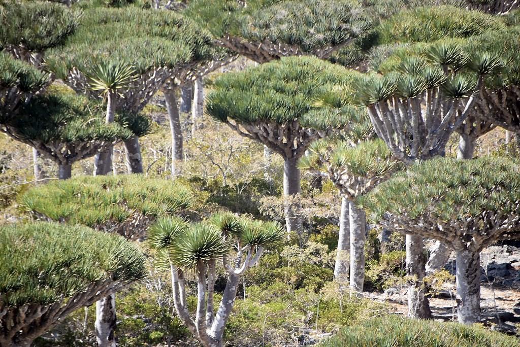 Flora „extraterestră”: este unul dintre cele mai bune locuri din lume pentru a vedea păduri de Arborele Sângele Dragonului (Dracaena cinnabari), cu forma lor iconică de umbrelă întoarsă.