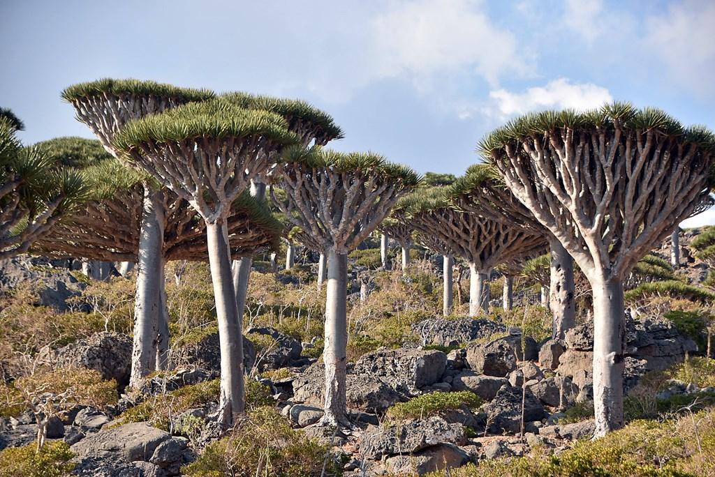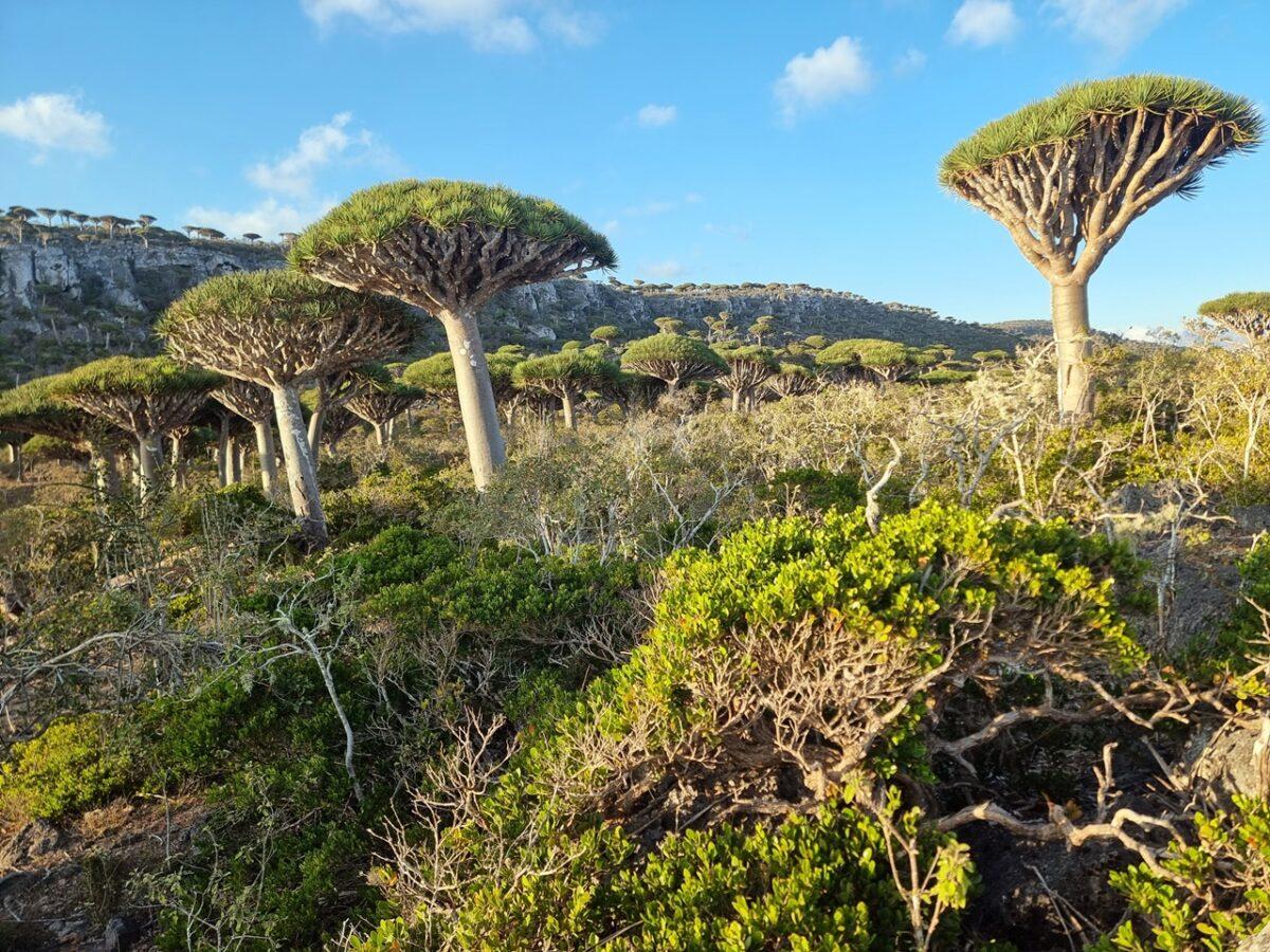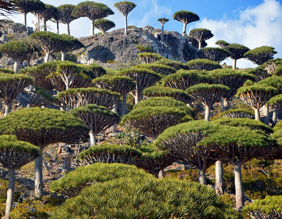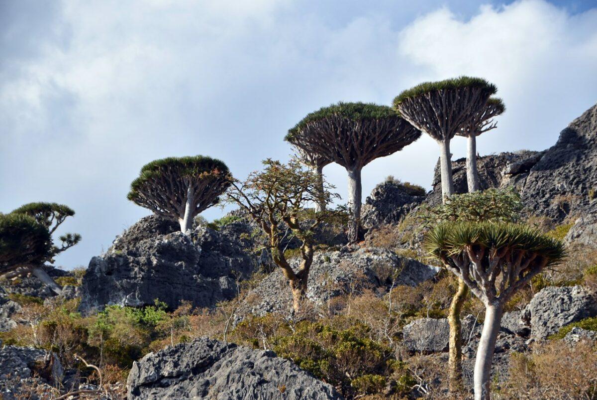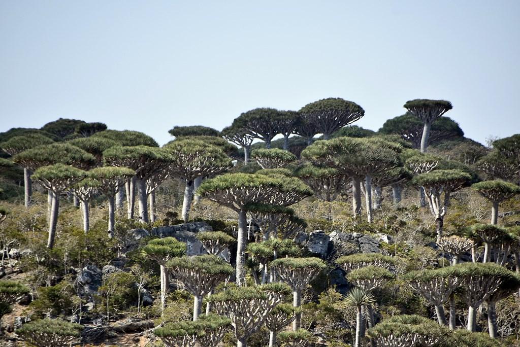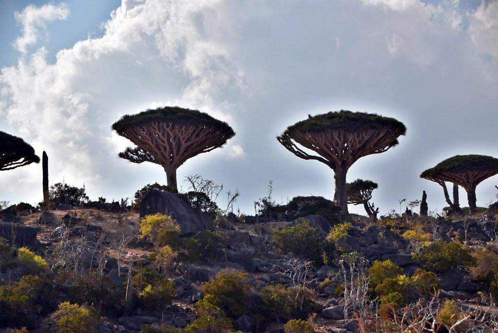 Flora „extraterestră”: este unul dintre cele mai bune locuri din lume pentru a vedea păduri de Arborele Sângele Dragonului (Dracaena cinnabari), cu forma lor iconică de umbrelă întoarsă.