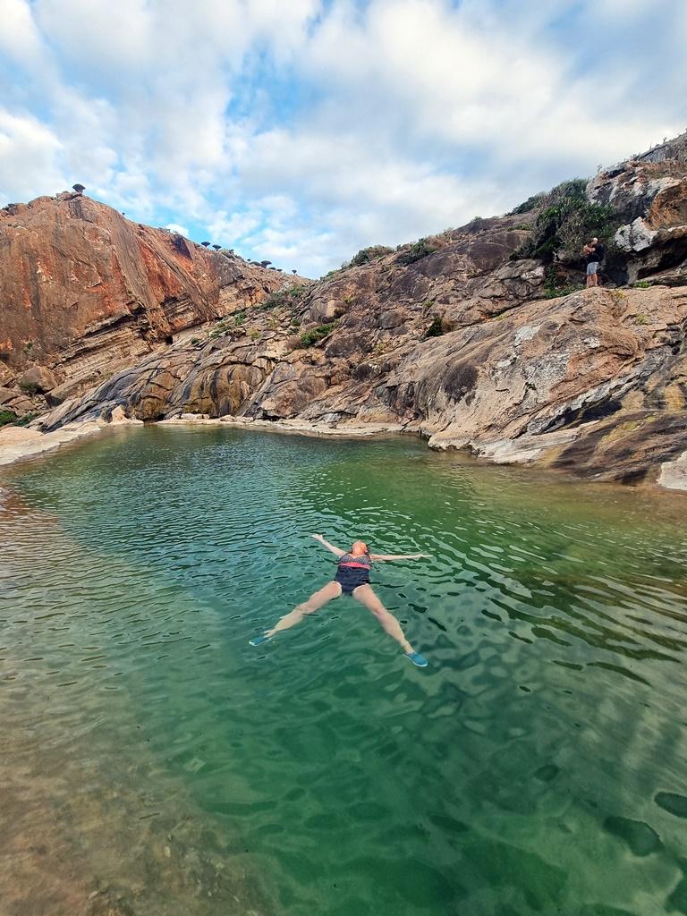 Piscina naturală „Infinity”: cea mai cunoscută atracție este un bazin natural cu apă proaspătă situat chiar pe marginea unei prăpăstii, oferind o vedere panoramică spectaculoasă asupra mării Arabiei și a coastei de jos.