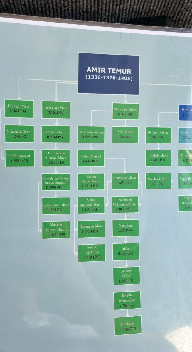 1. Ulugh Beg (Nepotul lui Timur): A fost unul dintre cei mai mari astronomi ai lumii medievale și conducător al Samarkandului. Spre deosebire de bunicul său, el a pus accent pe știință. A fost asasinat din ordinul propriului fiu, iar piatra sa funerară menționează statutul de „martir”.