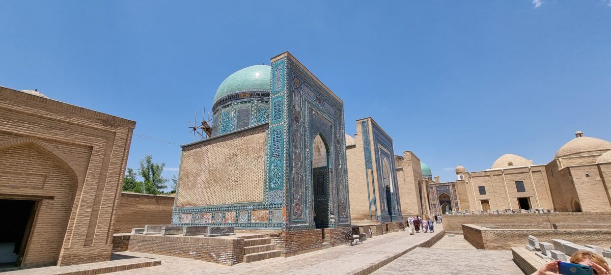 Shah-i-Zinda (în persană: „Regele cel Viu”) este, pentru mulți, cel mai impresionant sit din Samarkand. Nu este doar o necropolă, ci o adevărată „stradă” a mausoleelor, unde nuanțele de albastru și turcoaz ating o intensitate hipnotizantă.