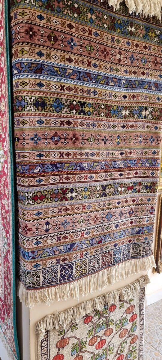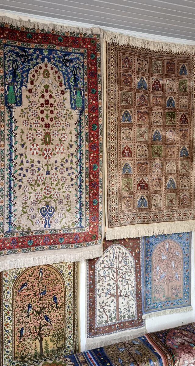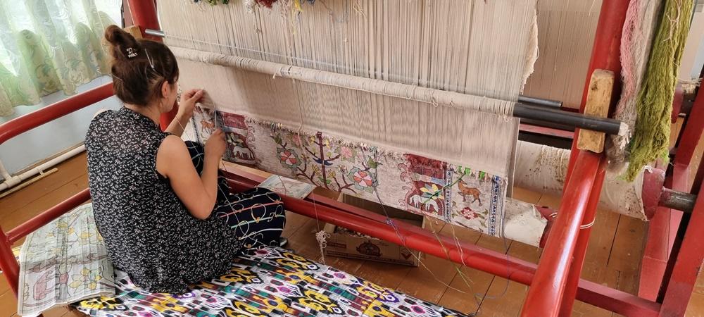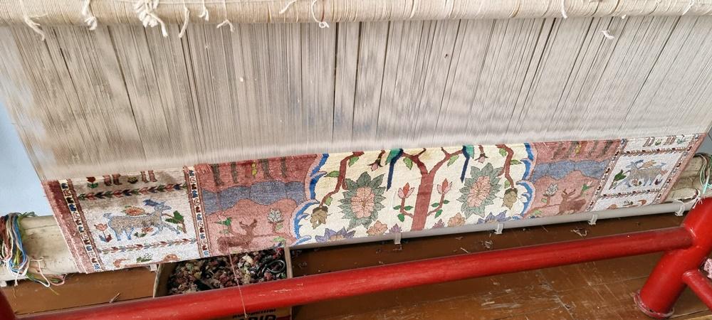 – Poți urmări întreg procesul manual – de la fierberea gogoșilor de mătase și vopsirea firelor cu coji de nucă, rodie sau indigo, până la nodurile migăloase făcute de artizane.
