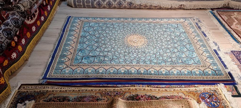 – Materiale: Mătasea este vedeta; covoarele sunt subțiri, incredibil de fine și își schimbă nuanța în funcție de unghiul din care cade lumina.