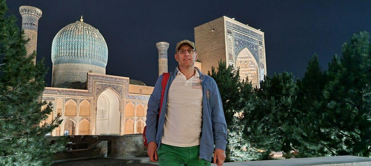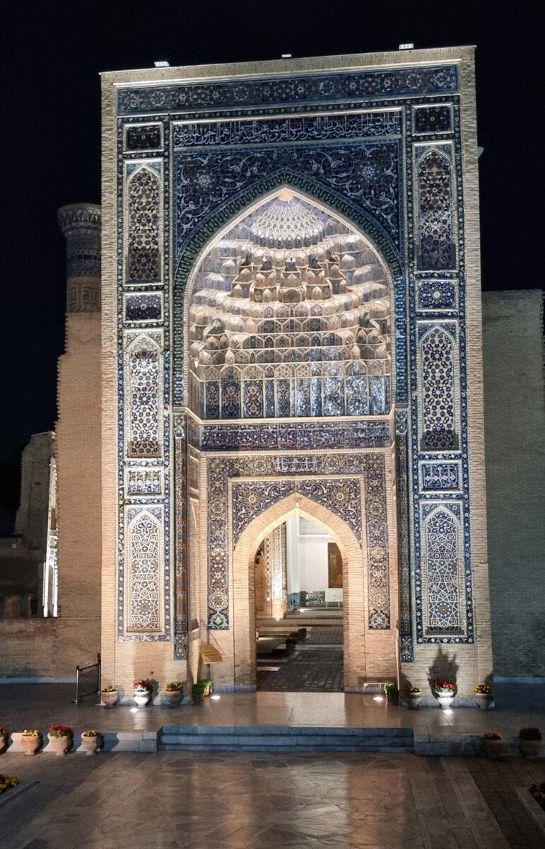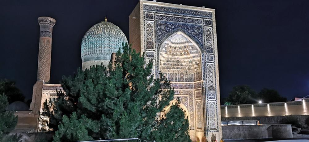 -Vizita de noapte: Gur-e-Amir este, probabil, cel mai frumos monument din Samarkand pe timp de noapte. Sistemul de iluminat modern evidențiază detaliile domului într-un mod spectaculos.