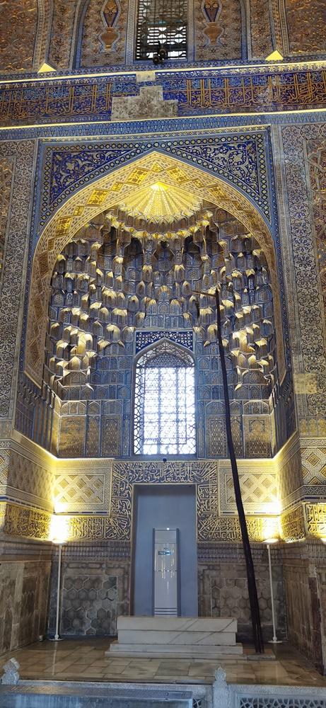 -Piatra de Jad: Mormântul lui Timur este acoperit de o singură piesă masivă de jad verde închis, despre care se spune că a fost cea mai mare din lume la acea vreme.